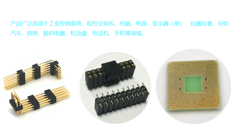 母、簡(jiǎn)牛、牛角、圓針、圓孔IC插座、PGA插座、接線(xiàn)端子臺(tái)、Wafer、Housing、Terminal、短路帽、PLCC、USB、D-SUB以及其它各類(lèi)連接器。產(chǎn)品廣泛應(yīng)用于工業(yè)控制系
